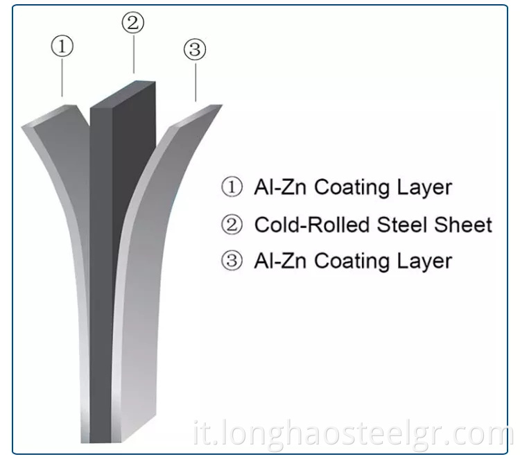 1. Resistenza alla Corrosione: quando Alu-Zinc è abraso, l'alluminio forma uno strato denso di allumina che impedisce un'ulteriore corrosione del materiale corrosivo all'interno.